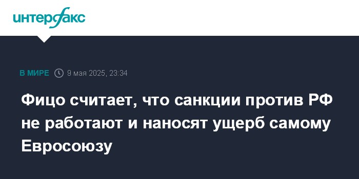 Москва. 9 мая. INTERFAX.RU - Премьер-министр Словакии Роберт Фицо заявил, что санкции, введенные Евросоюзом в отношении России, наносят ущерб прежде всего самим европейцам.