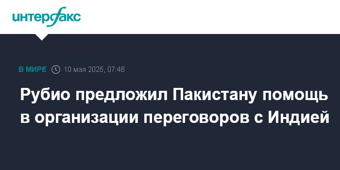 Москва. 10 мая. INTERFAX.RU - Госсекретарь США Марко Рубио в телефонном разговоре с главнокомандующим пакистанской армией генералом Асимом Муниром предложил оказать помощь в урегулировании конфликта с Индией.