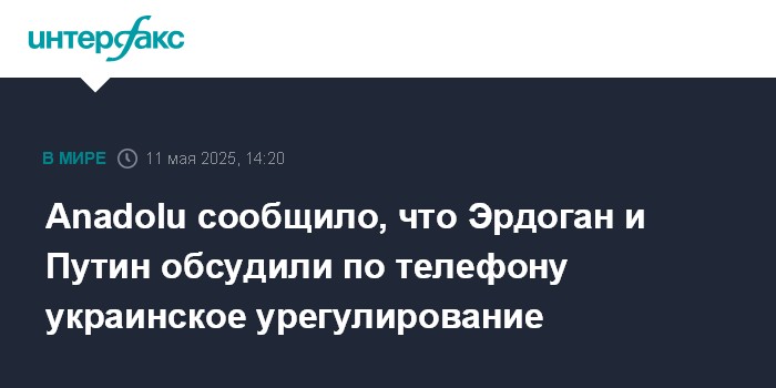 Anadolu сообщило, что Эрдоган и Путин обсудили по телефону украинское урегулирование