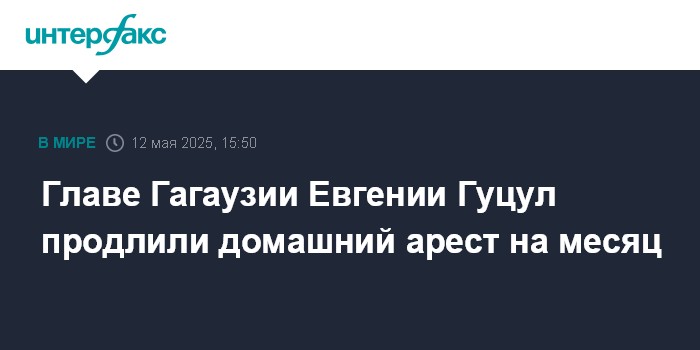 Москва. 12 мая. INTERFAX.RU - Суд Кишинева по ходатайству прокуроров продлил на 30 суток, до 13 июня домашний арест башкану Гагаузской автономии Молдавии Евгении Гуцул. Об этом говорится в решении суда.