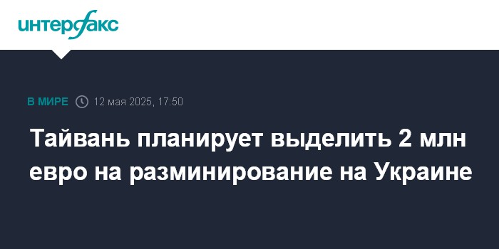Москва. 12 мая. INTERFAX.RU - Тайвань выделит 2 млн евро Литве, возглавляющей международную коалицию по разминированию на Украине, сообщило Минобороны Литвы.