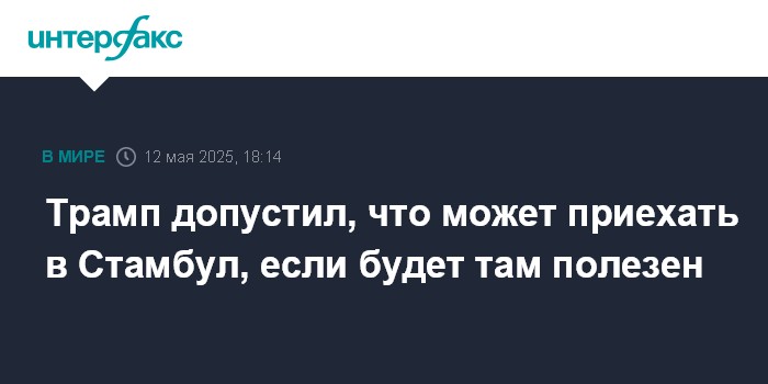 Развивая мысль о том, что он мог бы в четверг посетить Стамбул в случае проведения там переговоров между РФ и Украиной, Трамп пояснил, что такой вариант не исключен, "если я решу, что могу быть там полезен".