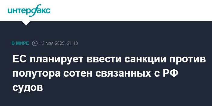 Москва. 12 мая. INTERFAX.RU - Власти ЕС собираются добавить в санкционные списки по РФ 149 судов в связи с несоблюдением ими ограничений Евросоюза против РФ в нефтяной сфере, передает в понедельник портал EUobserver со ссылкой на проект Еврокомиссии (ЕК).