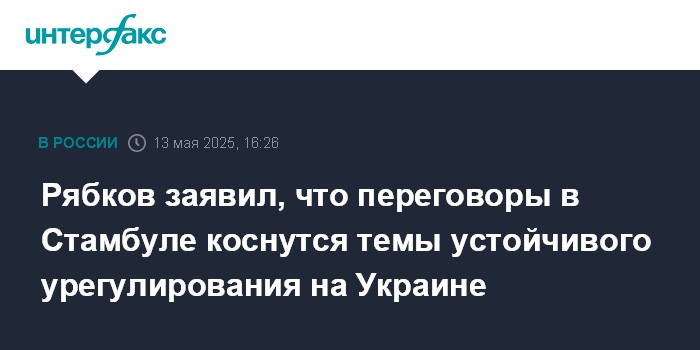 Москва. 13 мая. INTERFAX.RU - Повестка переговоров по ситуации на Украине, которые, как ожидается, могут состояться 15 мая в Стамбуле, будет охватывать вопросы, связанные с надежным и устойчивым урегулированием конфликта, заявил замглавы МИД РФ Сергей Рябков.