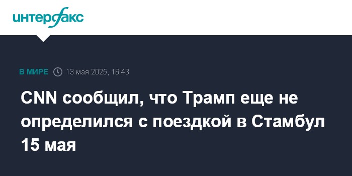 Москва. 13 мая. INTERFAX.RU - Президент США Дональд Трамп пока не принял решение, отправится ли он в Турцию, где 15 мая ожидаются переговоры между Россией и Украиной, сообщает во CNN со ссылкой на высокопоставленный источник в администрации США.