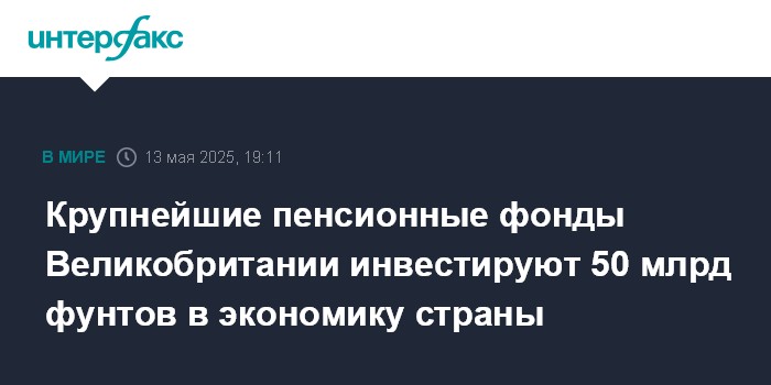Крупнейшие пенсионные фонды Великобритании инвестируют 50 млрд фунтов в экономику страны