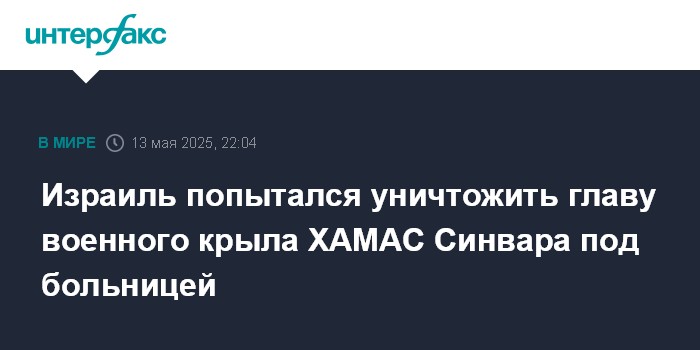Москва. 13 мая. INTERFAX.RU - Армия обороны Израиля (ЦАХАЛ) во вторник нанесла удар по главе военного крыла группировки ХАМАС Мухаммеду Синвару, который укрывался в бункере под больницей в Хан-Юнисе на юге сектора Газа, сообщает Axios со ссылкой на источники.