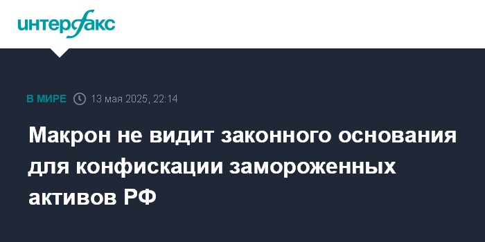 Москва. 13 мая. INTERFAX.RU - Президент Франции Эммануэль Макрон заявил, что для конфискации замороженных российских активов нет правовой базы.
