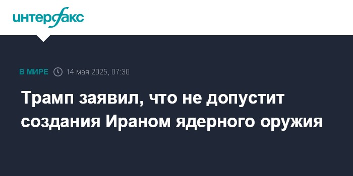 Москва. 14 мая. INTERFAX.RU - Президент США Дональд Трамп заявил, что приветствует развитие Ирана, но не допустит создания Тегераном ядерного оружия.