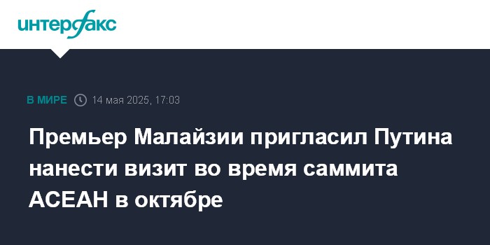 "Самый большой подарок для народа Малайзии – если президент России сможет как можно скорее прибыть в нашу страну, например, во время саммита АСЕАН в октябре. Я могу заверить вас, что ваше присутствие в Малайзии будет большим прорывом для Малайзии, для всего региона. Я верю, что многие люди в регионе очень многого ждут от вашей роли, от вашего лидерства", - сказал Ибрагим по итогам совместных переговоров с Путиным в среду в Москве.