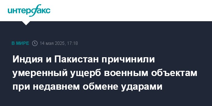 Индия и Пакистан причинили умеренный ущерб военным объектам при недавнем обмене ударами
