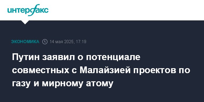 Путин заявил о потенциале совместных с Малайзией проектов по газу и мирному атому