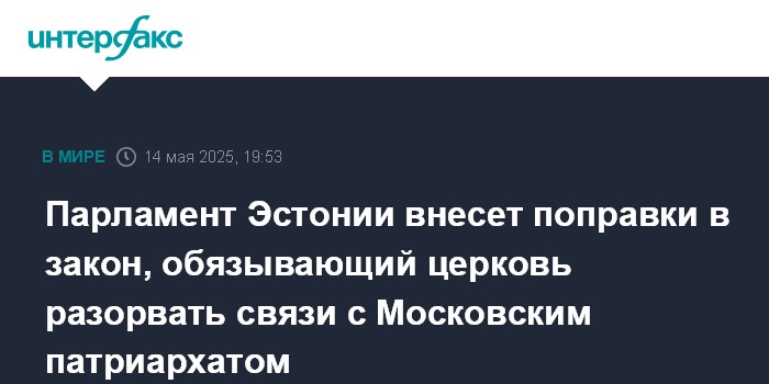 Парламент принял закон 9 апреля. В нем говорится, что "действующая в Эстонии церковь, приход или монастырь не могут руководствоваться в своей деятельности лицом или объединением, имеющими значительное влияние и расположенными в иностранном государстве... если они представляют угрозу безопасности, конституционному строю или общественному порядку Эстонии".