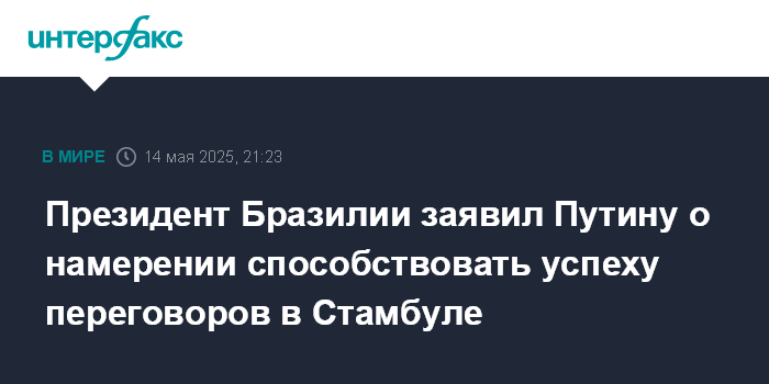 Президент Бразилии заявил Путину о намерении способствовать успеху переговоров в Стамбуле