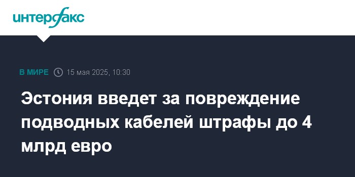 Эстония введет за повреждение подводных кабелей штрафы до 4 млрд евро