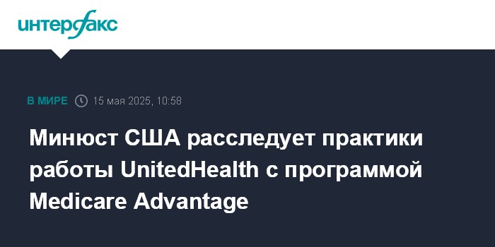Москва. 15 мая. INTERFAX.RU - Министерство юстиции США проводит уголовное расследование в отношении UnitedHealth Group Inc., касающееся практик работы со страховой программой Medicare Advantage, пишет The Wall Street Journal.