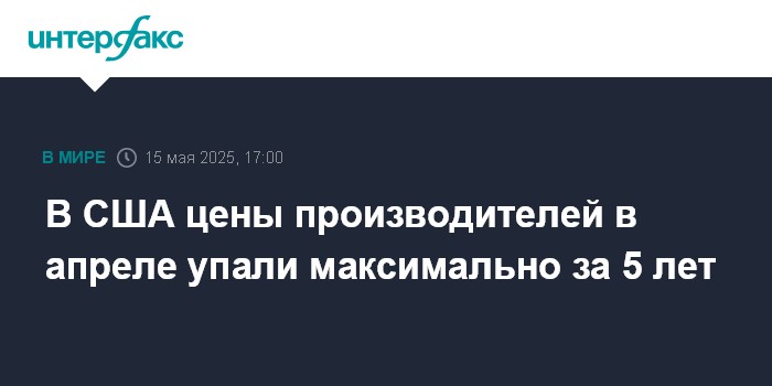 Москва. 15 мая. INTERFAX.RU - В США в апреле цены производителей (индекс PPI) сократились на 0,5% к марту, сообщило Министерство труда страны. Это первое снижение показателя с октября 2023 года и самое значительное за пять лет (с апреля 2020 года).