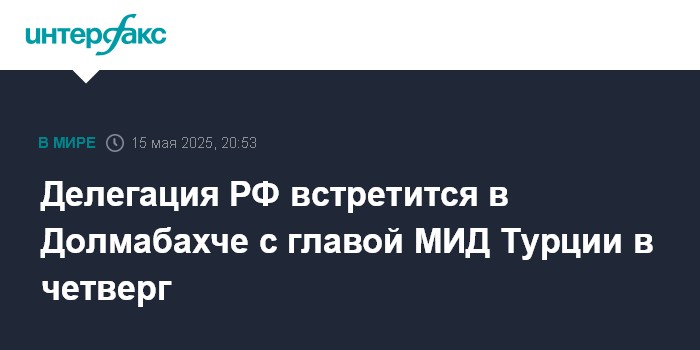 Москва. 15 мая. INTERFAX.RU - Российская делегация, направленная в Стамбул для переговоров по Украине, в четверг вечером встретится с главой МИД Турции Хаканом Фиданом в комплексе Долмабахче, сообщил "Интерфаксу" осведомленный источник.