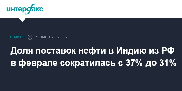 Доля поставок нефти в Индию из РФ в феврале сократилась с 37% до 31%