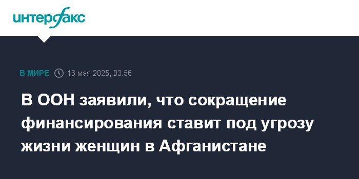 Москва. 16 мая. INTERFAX.RU - Заместитель исполнительного директора Фонда ООН в области народонаселения (ЮНФПА) Эндрю Сабертон заявил, что объявленное властями США сокращение финансирования Фонда напрямую повлияет на гуманитарные программы в Афганистане.