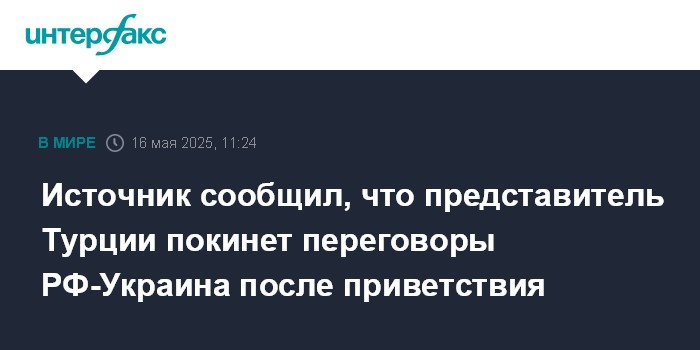 "В пятницу в Стамбуле запланированы прямые переговоры Россия-Украина, представитель Турции должен покинуть переговорную комнату после приветствия", - сказал источник.
