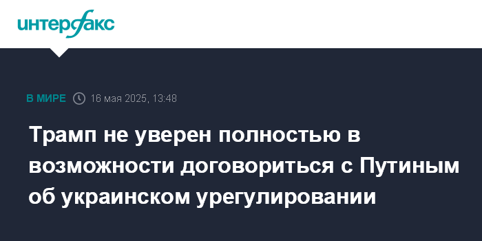Трамп не уверен полностью в возможности договориться с Путиным об украинском урегулировании