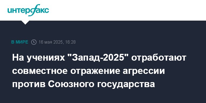Москва. 16 мая. INTERFAX.RU - Предстоящие российско-белорусские учения "Запад-2025" будут носить сугубо оборонительный характер, в ходе их проведения предстоит отработать совместные действия по отражению агрессии против Союзного государства, сообщил в пятницу министр обороны РФ Андрей Белоусов.