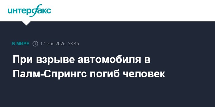 Москва. 17 мая. INTERFAX.RU - Как минимум один человек погиб при взрыве автомобиля в Палм-Спрингc (Калифорния), сообщает NBC со ссылкой на источник в правоохранительных органах.