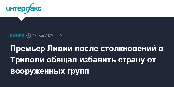 Москва. 18 мая. INTERFAX.RU - Премьер-министр Ливии Абдель Хамид Дбейба после череды столкновений в Триполи заявил, что правительство имеет возможность покончить с неподконтрольными ему вооруженными группами.