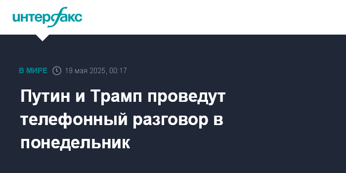Это будет третий телефонный разговор Путина и Трампа с начала года. Он состоится через два дня после первых прямых российско-украинских переговоров, прошедших в Стамбуле в минувшую пятницу.
