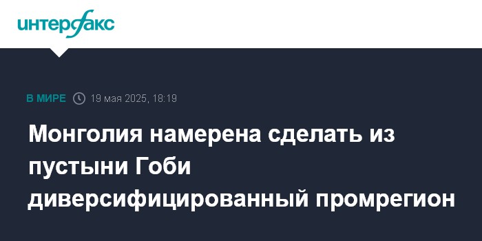 Москва. 19 мая. INTERFAX.RU - Власти Монголии намерены реализовать в аймаках (областях страны - ИФ), расположенных на территории пустыни Гоби, несколько десятков проектов в различных сферах, чтобы превратить пустынный регион в новый промышленный центр и субрегион с "зеленой" энергетикой, сообщает сайт правительства.