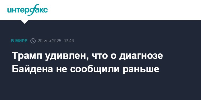 Москва. 20 мая. INTERFAX.RU - Президент США Дональд Трамп выразил удивление, что о диагностированном у его предшественника Джо Байдена раке простаты стало известно только сейчас.