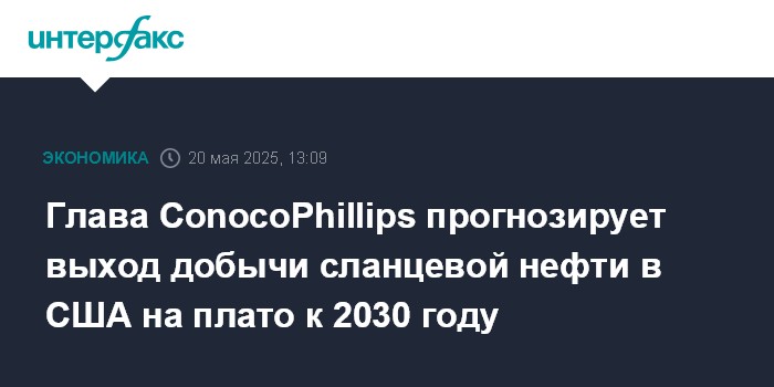 Глава ConocoPhillips прогнозирует выход добычи сланцевой нефти в США на плато к 2030 году