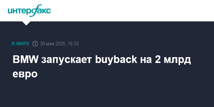 Москва. 20 мая. INTERFAX.RU - Совет директоров германской Bayerische Motoren Werke AG (BMW) одобрил программу обратного выкупа акций на сумму до 2 млрд евро.