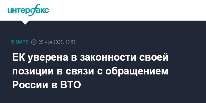 ЕК уверена в законности своей позиции в связи с обращением России в ВТО