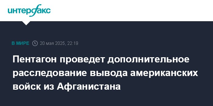 Москва. 20 мая. INTERFAX.RU - Шеф Пентагона Пит Хегсет поручил создать специальную группу для изучения результатов предыдущих расследований и других фактов относительно вывода американских войск из Афганистана в 2021 году.