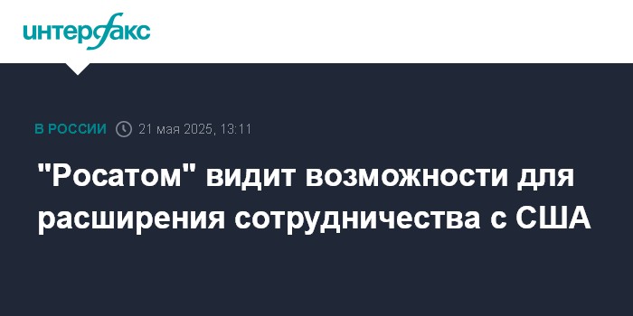 Москва. 21 мая. INTERFAX.RU - ГК "Росатом" видит возможности для расширения сотрудничества с США, особенно в контексте ведущихся между странами переговоров, заявил журналистам гендиректор госкорпорации Алексей Лихачев.