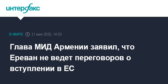 Москва. 21 мая. INTERFAX.RU - Армения не ведет с Евросоюзом переговоров о вступлении в союз, заявил глава МИД Армении Арарат Мирзоян.