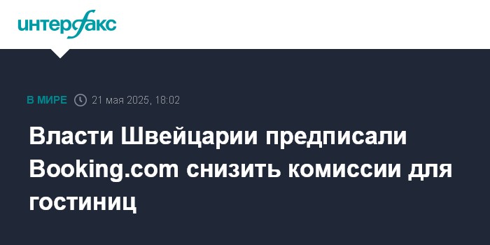 Москва. 21 мая. INTERFAX.RU - Швейцарский регулятор в сфере ценообразования (PUE) предписал американскому сервису онлайн-бронирования отелей Booking.com, оператором которого выступает Booking Holdings, снизить цены в Швейцарии, говорится в сообщении PUE.