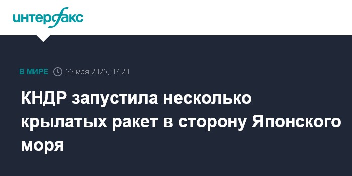Москва. 22 мая. INTERFAX.RU - Северная Корея в четверг выпустила несколько крылатых ракет в Японское море, сообщает "Ренхап" со ссылкой на южнокорейских военных.