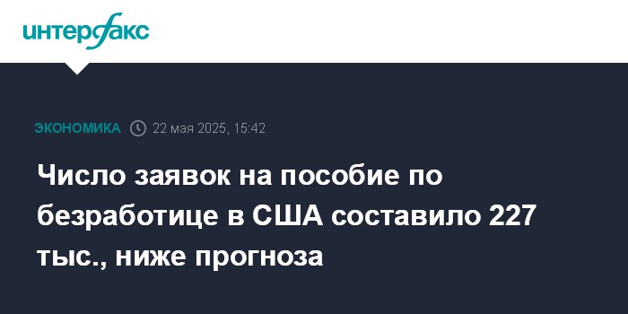 Москва. 22 мая. INTERFAX.RU - Количество американцев, впервые обратившихся за пособием по безработице, на прошлой неделе уменьшилось на 2 тыс. - до 227 тыс., сообщается в отчете министерства труда США.