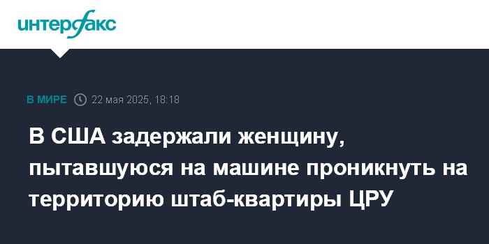 Москва. 22 мая. INTERFAX.RU - Американские стражи порядка задержали женщину, которая ранее на автомобиле попыталась проехать на территорию штаб-квартиры ЦРУ без соответствующего разрешения, сообщает телеканал CNN.