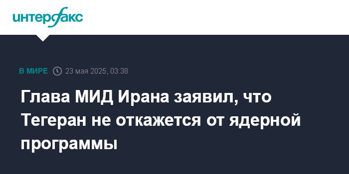 Москва. 23 мая. INTERFAX.RU - Иран не откажется от своей ядерной программы, но согласен на более широкий мониторинг со стороны международного сообщества, заявил министр иностранных дел Ирана Аббас Аракчи в преддверии очередного раунда переговоров с США.