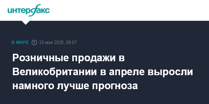 Розничные продажи в Великобритании в апреле повысились на 5% в годовом выражении, рекордными темпами с февраля 2022 года. Эксперты в среднем ожидали подъем на 4,5%. В марте, согласно пересмотренным данным, этот показатель вырос на 1,9%.