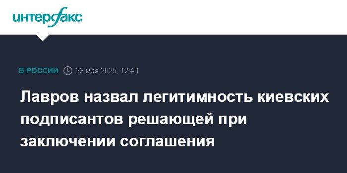 Москва. 23 мая. INTERFAX.RU - Решающее значение при заключении возможного соглашения об урегулировании ситуации на Украине будет иметь легитимность подписантов с украинской стороны, заявил глава МИД РФ Сергей Лавров.