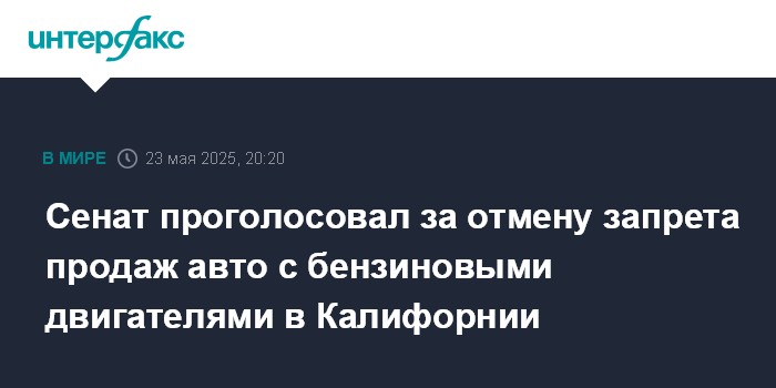 Сенат проголосовал за отмену запрета продаж авто с бензиновыми двигателями в Калифорнии