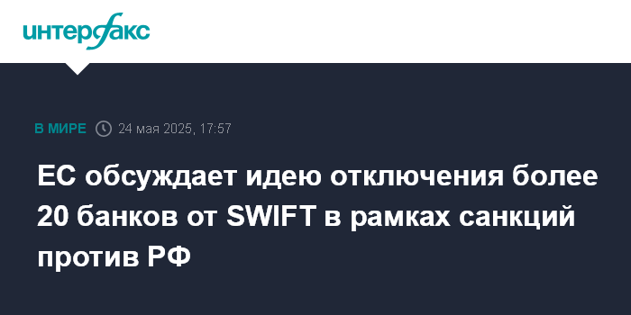 ЕС обсуждает идею отключения более 20 банков от SWIFT в рамках санкций против РФ