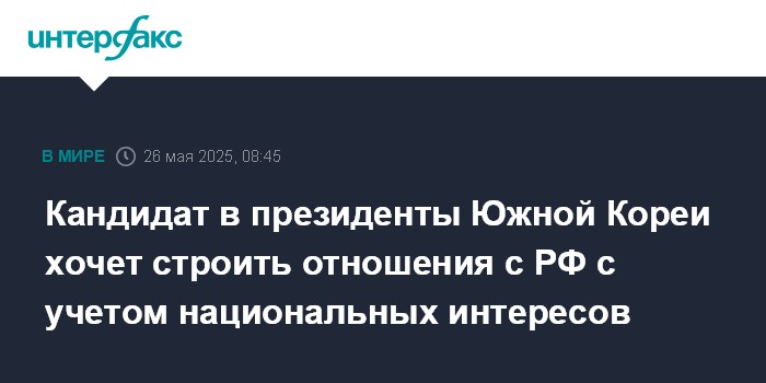 Кандидат в президенты Южной Кореи хочет строить отношения с РФ с учетом национальных интересов