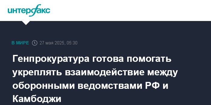 Генпрокуратура готова помогать укреплять взаимодействие между оборонными ведомствами РФ и Камбоджи