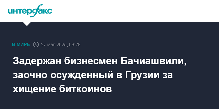 Задержан бизнесмен Бачиашвили, заочно осужденный в Грузии за хищение биткоинов